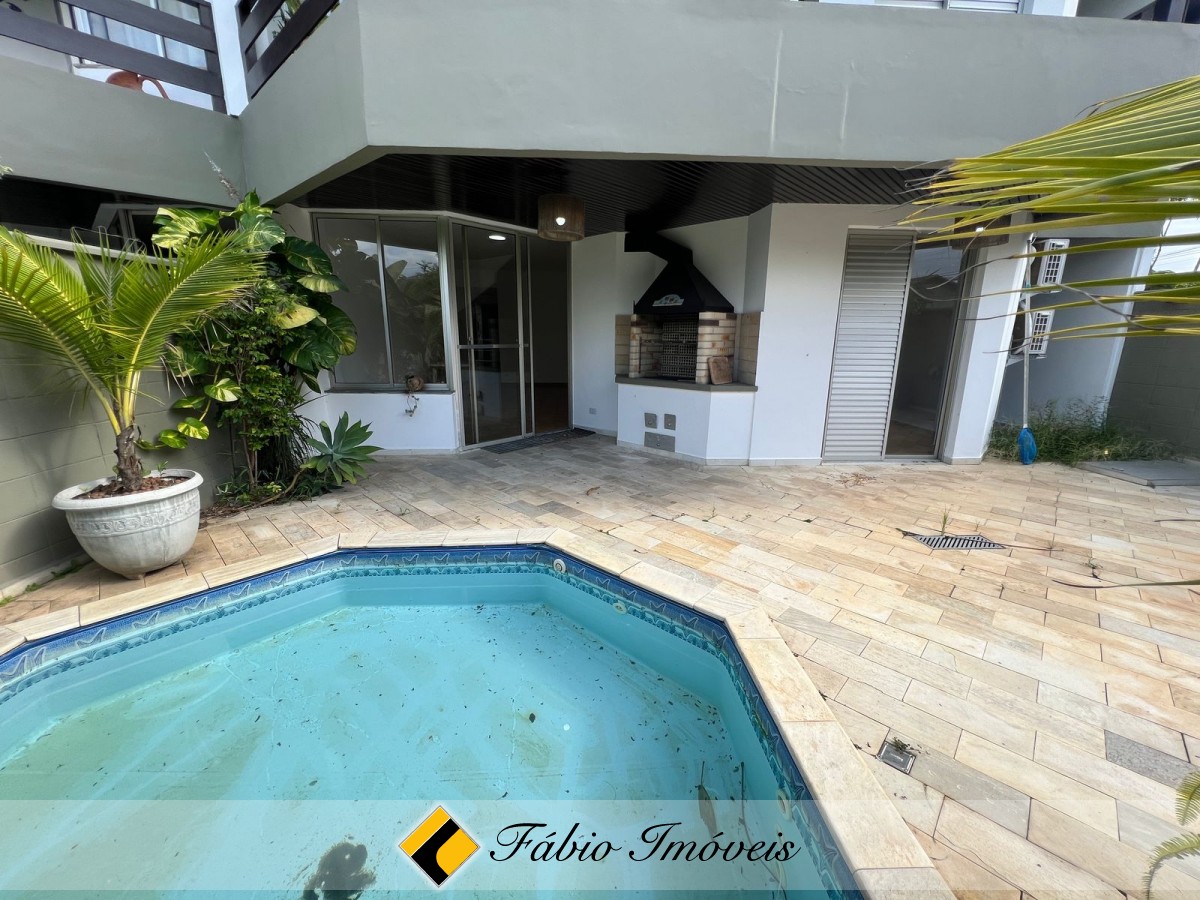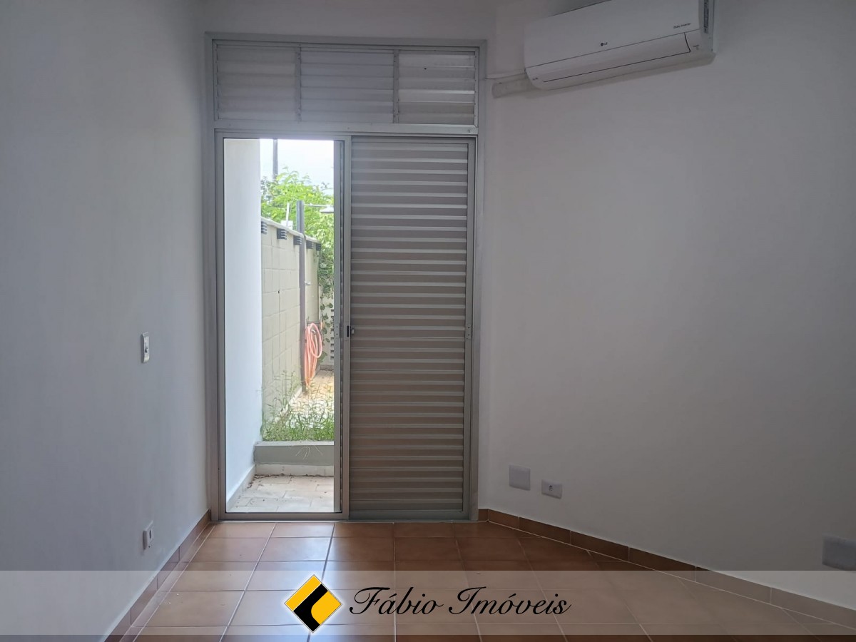 Dois dormitórios com ar condicionado, sendo 1 suíte com hall, wc social, quintal com espaço gourmet e piscina e duas vagas de garagem e depósito individual.
