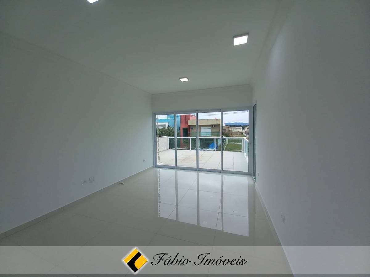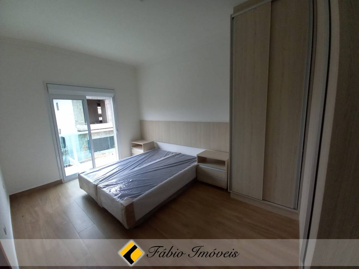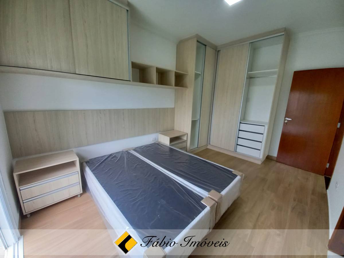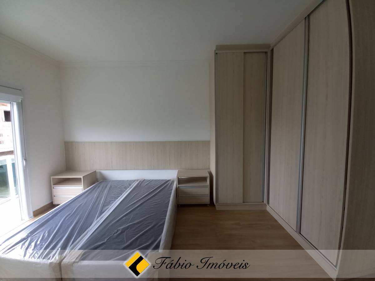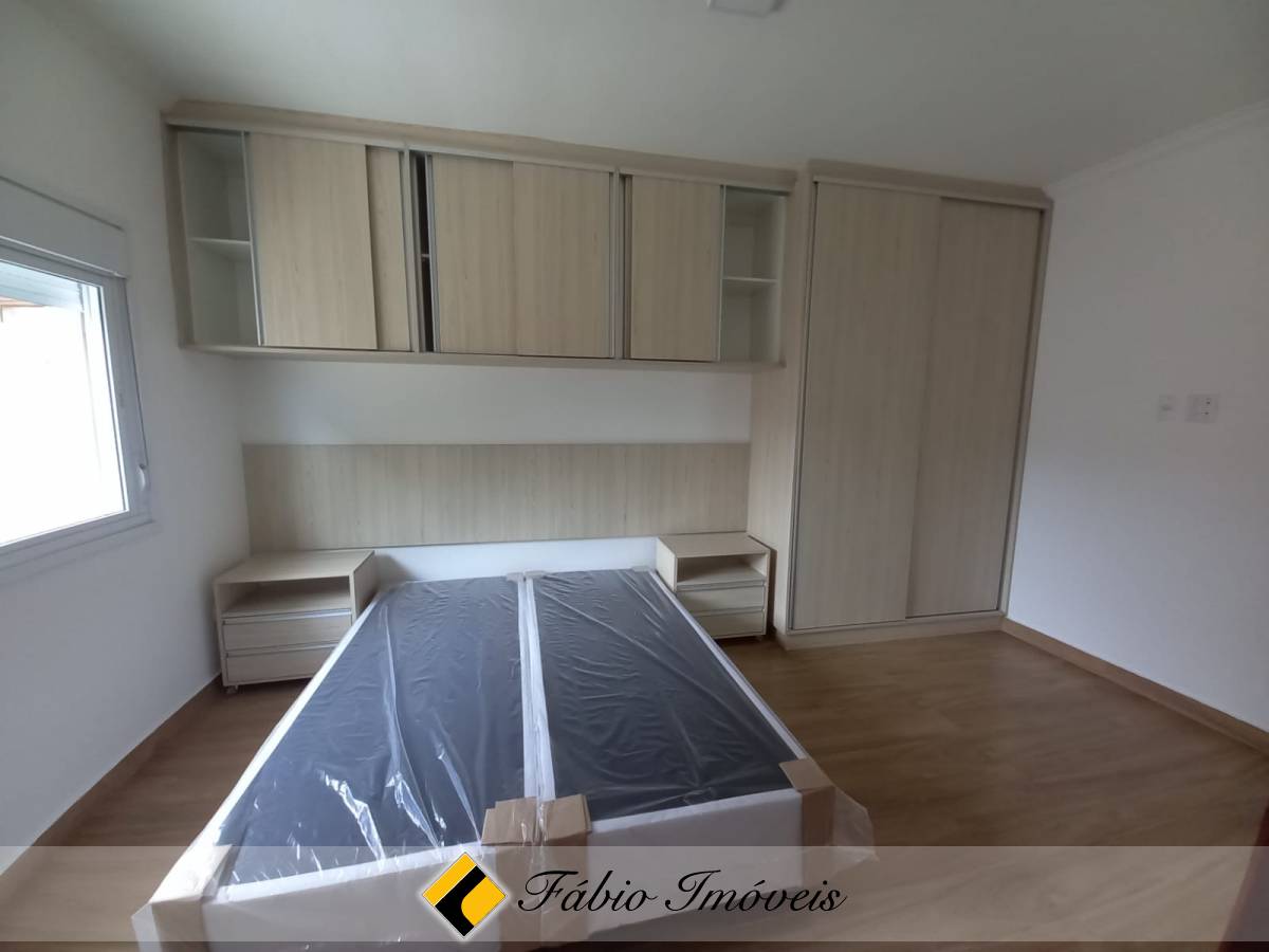 São quatro suítes, sendo uma no piso inferior e três no piso superior, todas com armários planejados e camas box, sala ampla para dois ambientes, cozinha com armários e balcão em granito, banheiro social, lavanderia, piscina, área gourmet com churrasqueira, esquadrias em alumínio e pisos em porcelanato.