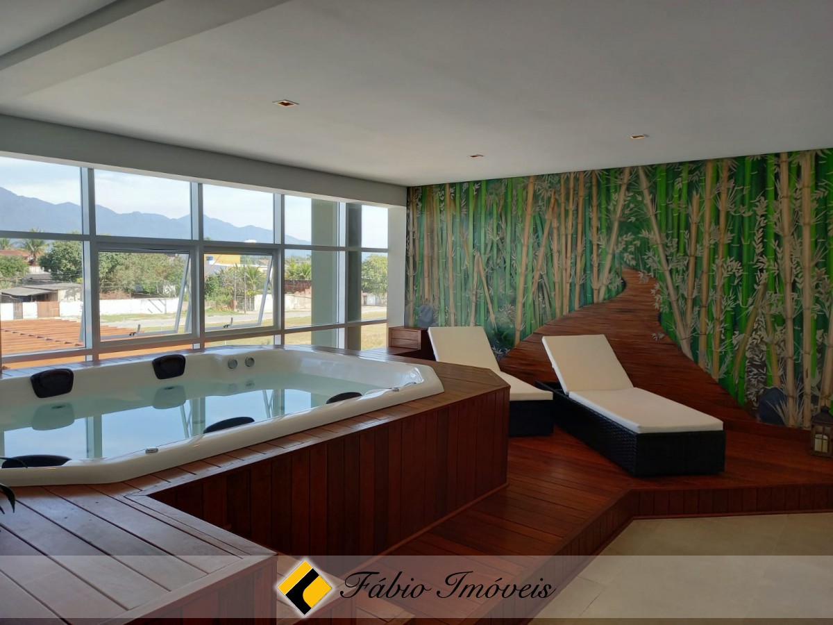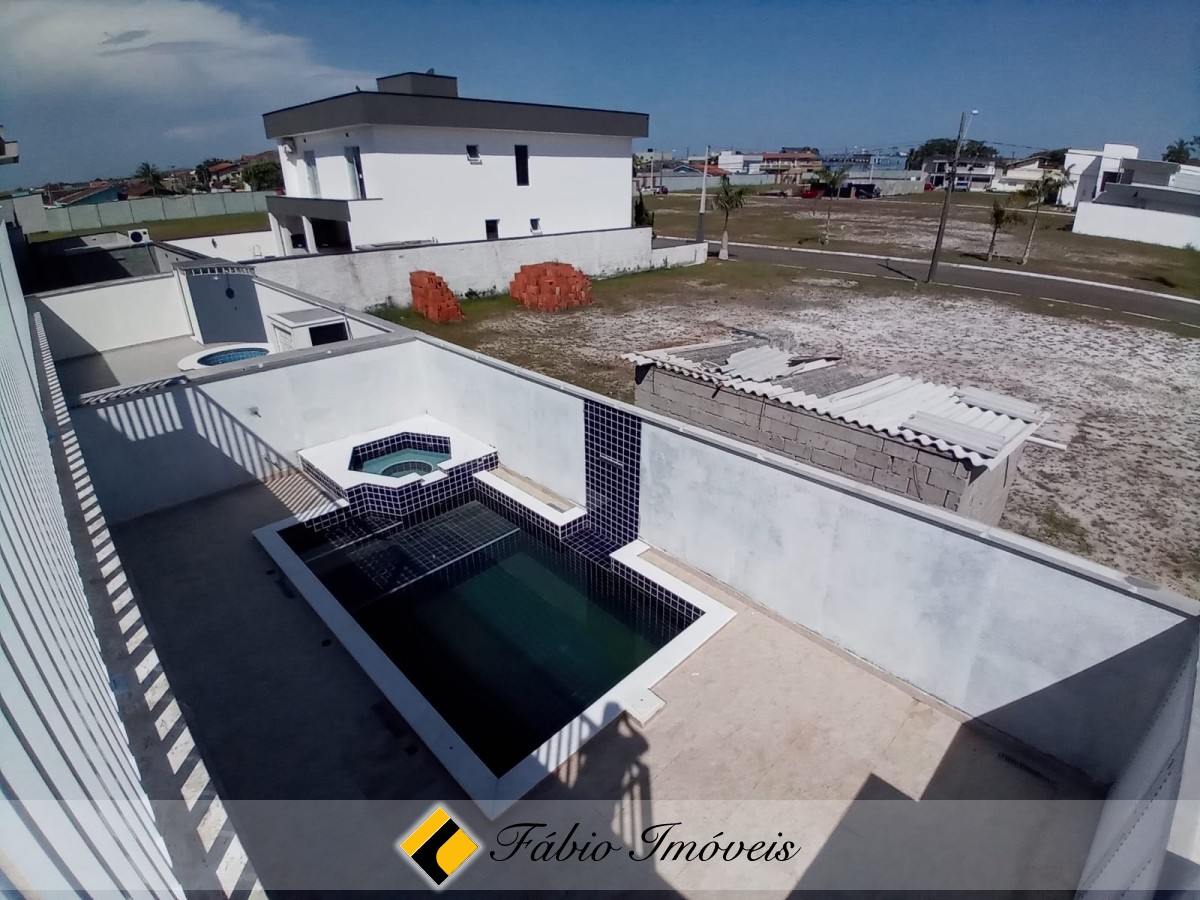 São 4 suítes, sendo 1 no térreo e 3 no pavimento superior, home office amplo, lavabo, sala para 2 ambientes, cozinha, área de serviço, espaço gourmet com churrasqueira, piscina dois níveis, spa, cascata, churrasqueira, wc externo, depósito e 4 vagas para veículos.