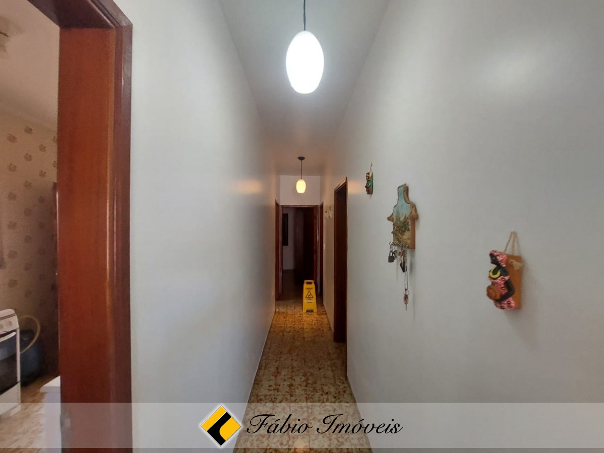 Sala ampla para dois ambientes, pé direito alto, janela grande trazendo maior ventilação e iluminação natural, cozinha espaçosa, balcão com armários, lavanderia integrada e 3 dormitórios sendo um suíte, no corpo principal do imóvel.