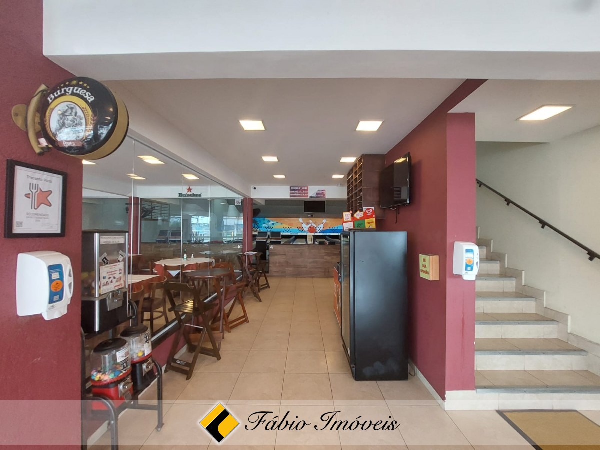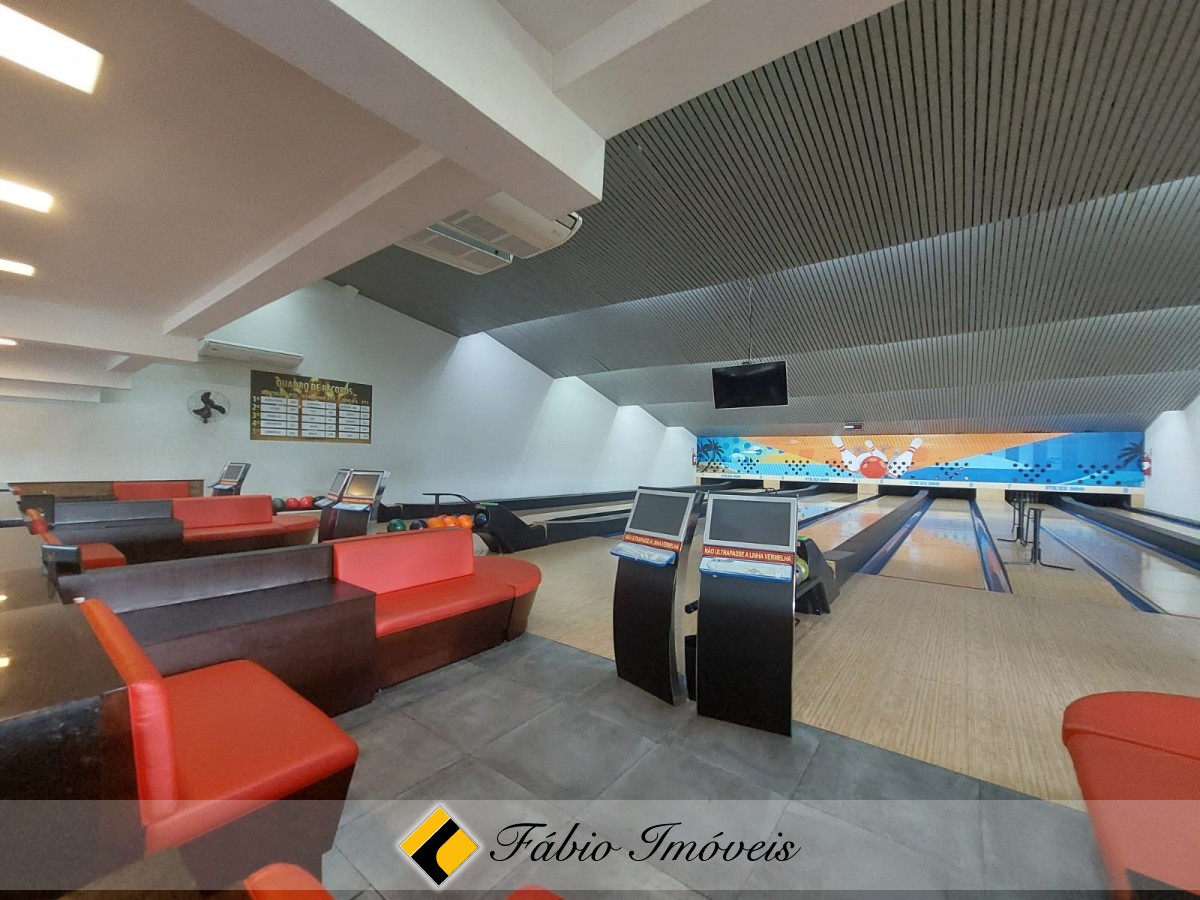Balcão, cozinha, recepção, forno a lenha, salão de jogos, wc para pessoas com necessidades especias, wc feminino, wc masculino, 2 câmaras frias, depósito de bebidas, despensa, área de serviço e 6 pistas de boliche.